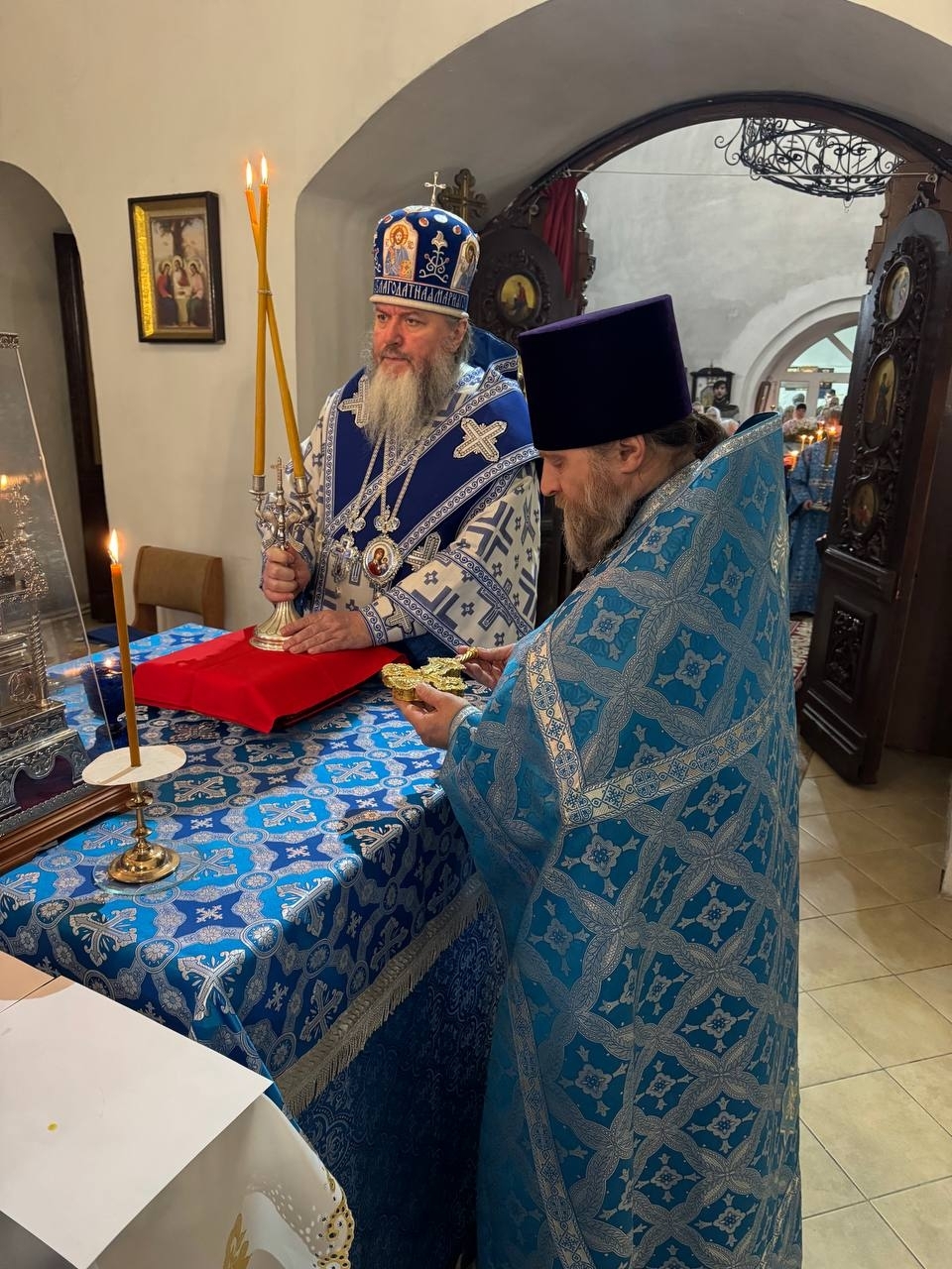 Преосвященнейшему архипастырю сослужили: настоятель храма, благочинный Кинешеского округа иерей Николай Семизоров, руководитель службы церковного протокола иеромонах Сергий (Варнашов), иерей Димитрий Филиппов, диакон Андрей Баранов.