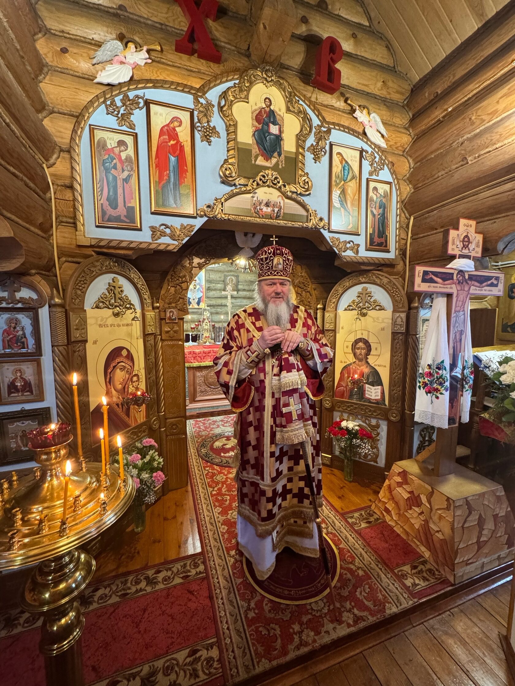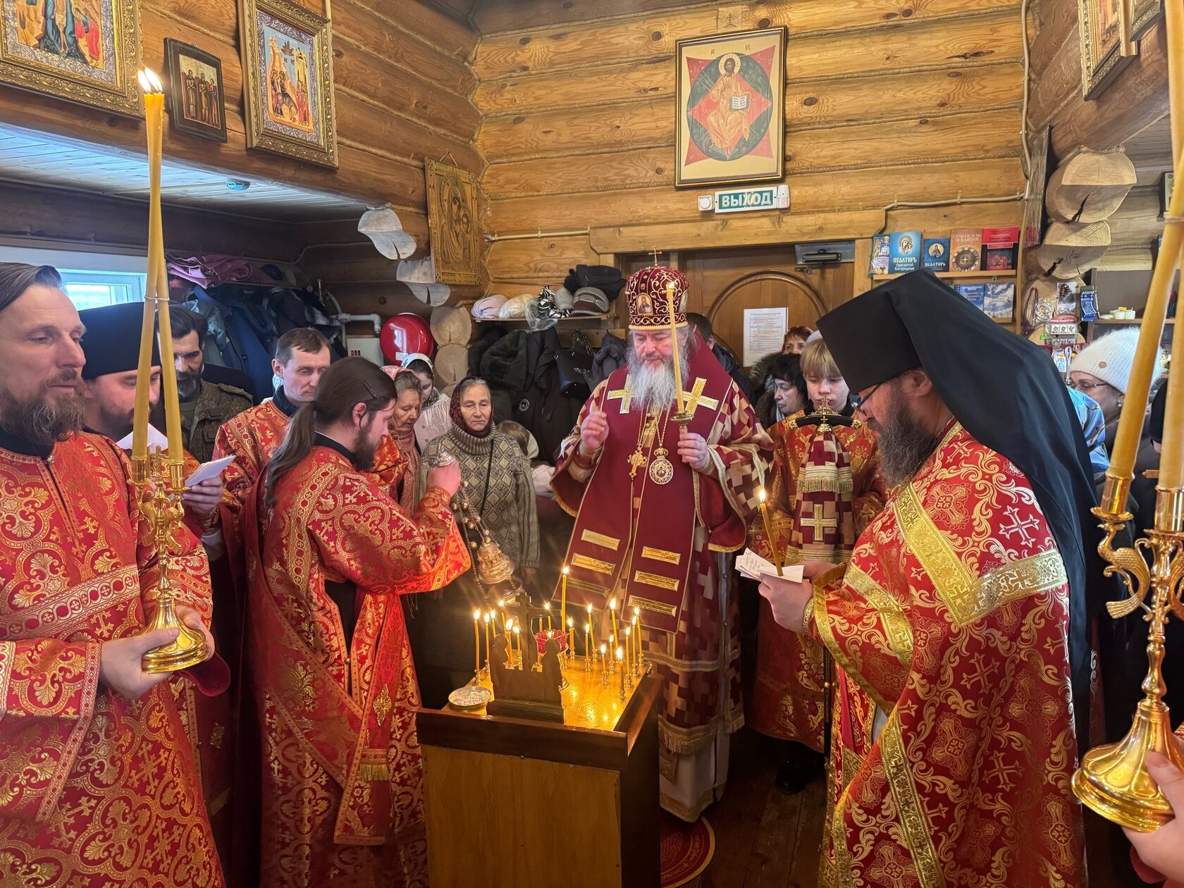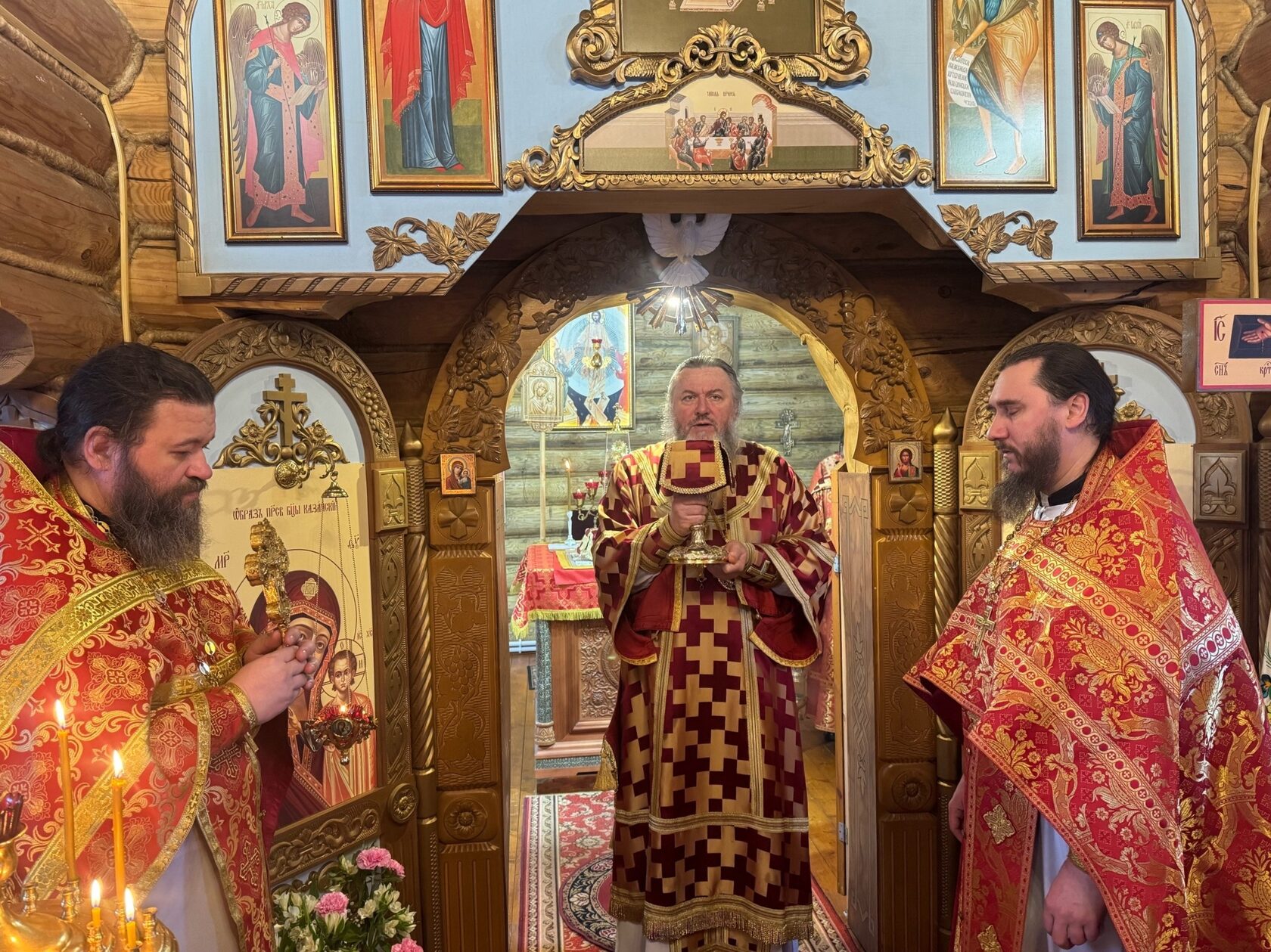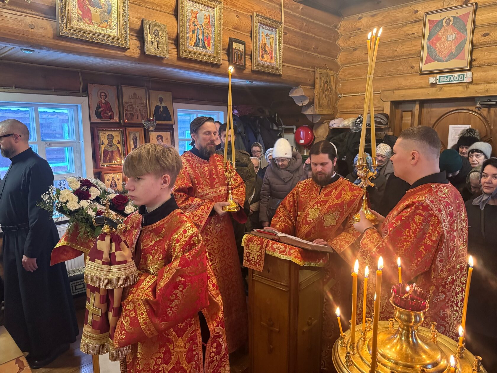 Преосвященному архипастырю сослужили: настоятель храма священноинок Александр (Завьялов), руководитель службы церковного протокола иеромонах Сергий (Варнашов), диакон Андрей Баранов, диакон Антоний Замышляев.