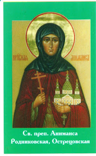 Послушания добрая рачительнице быв, преподобная Анимаисо приснопамятная: церковь бо Святыя Троицы сохранила еси. Темже и мы чада твоя с любовию вопием ти: слава давшему ти крепость, слава венчавшему тя, слава дающему тобою всем исцеление.