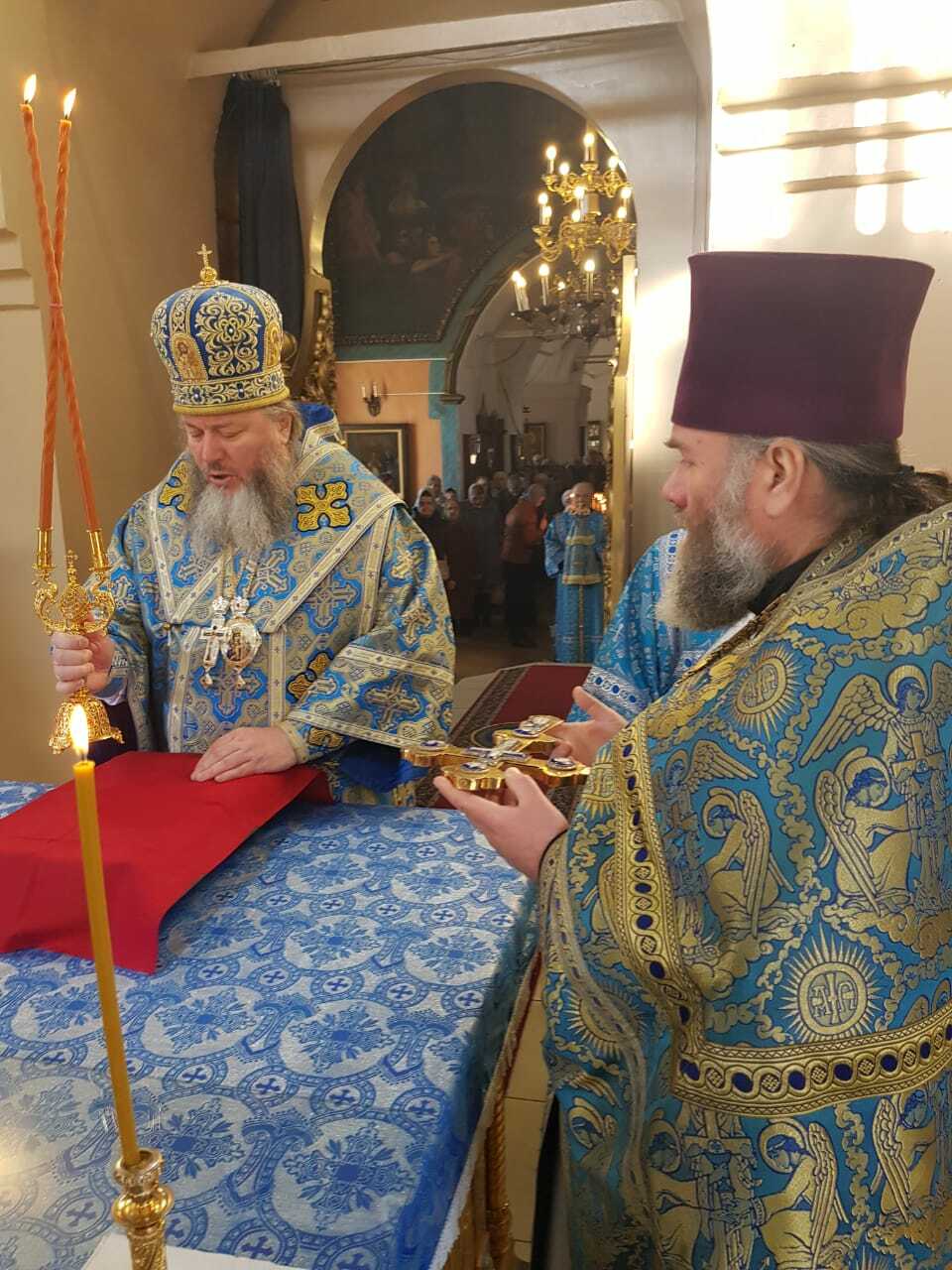 На малом входе епископ Иларион наградил диакона Виктора Александрова правом ношения камилавки. По окончании богослужения Преосвященный святитель поздравил многочисленных прихожан с Престольным праздником.