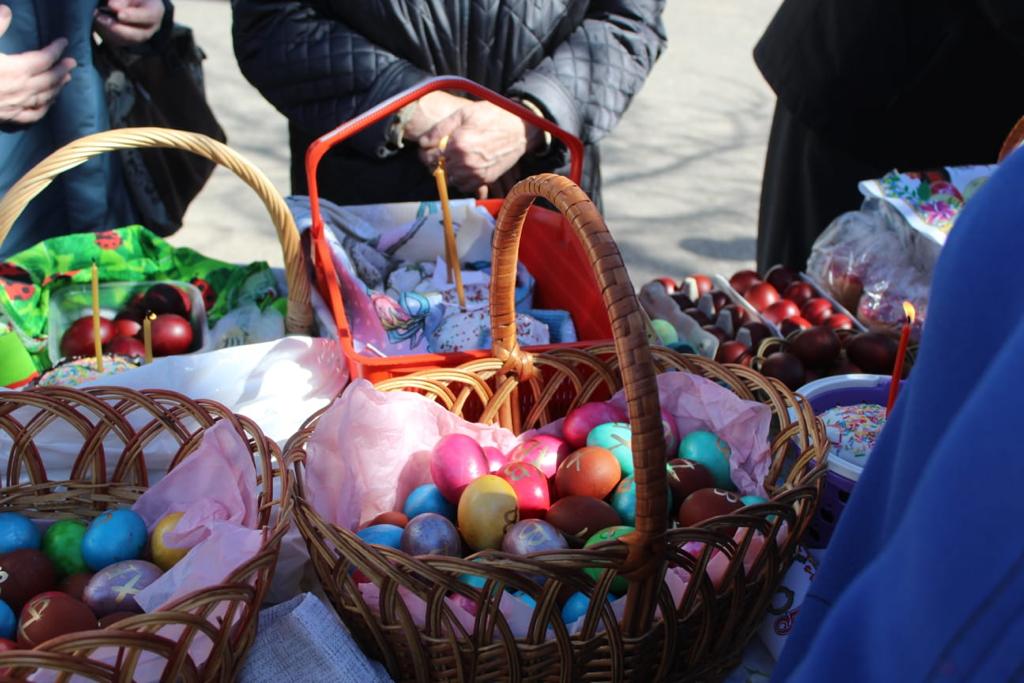 Затем духовенством собора было совершено освящение пасхальной снеди.