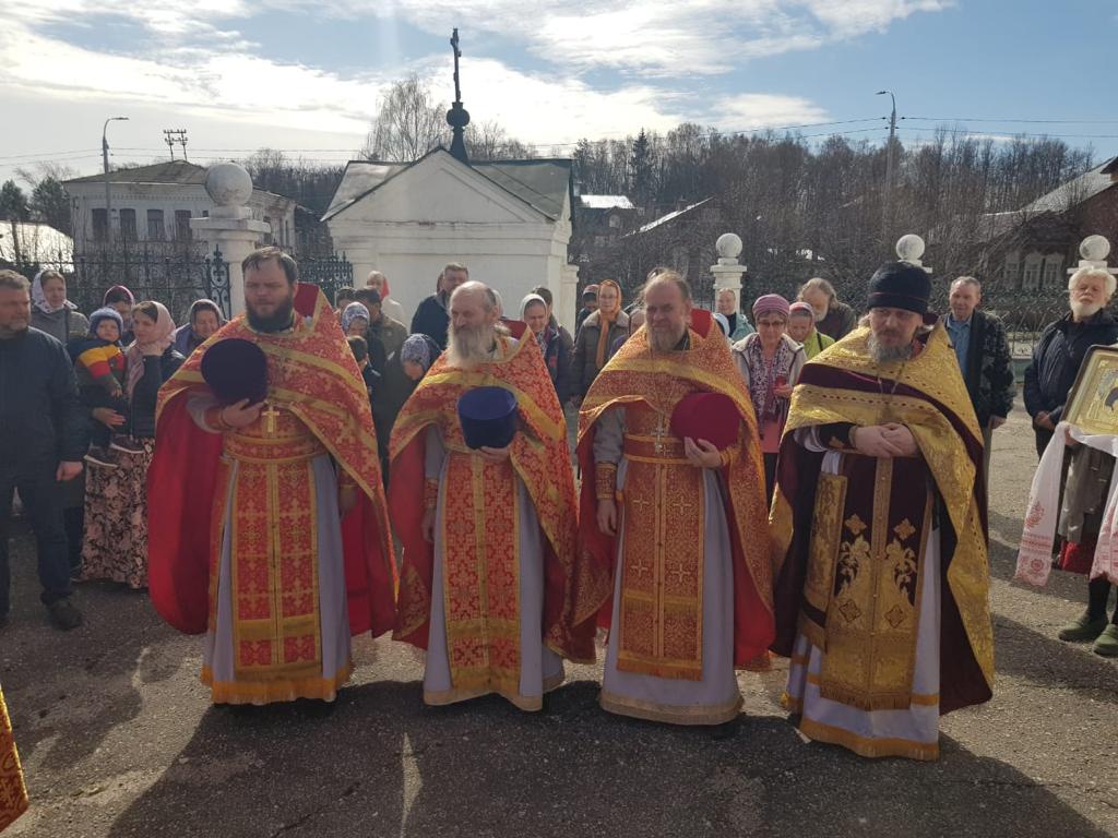 17 апреля, в Светлый понедельник, епископ Кинешемский и Палехский Иларион возглавил Пасхальное богослужение в Крестовоздвиженском кафедральном соборе п.Палех.