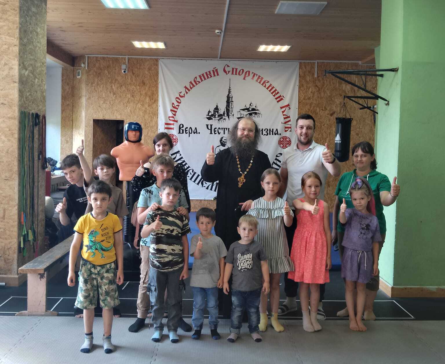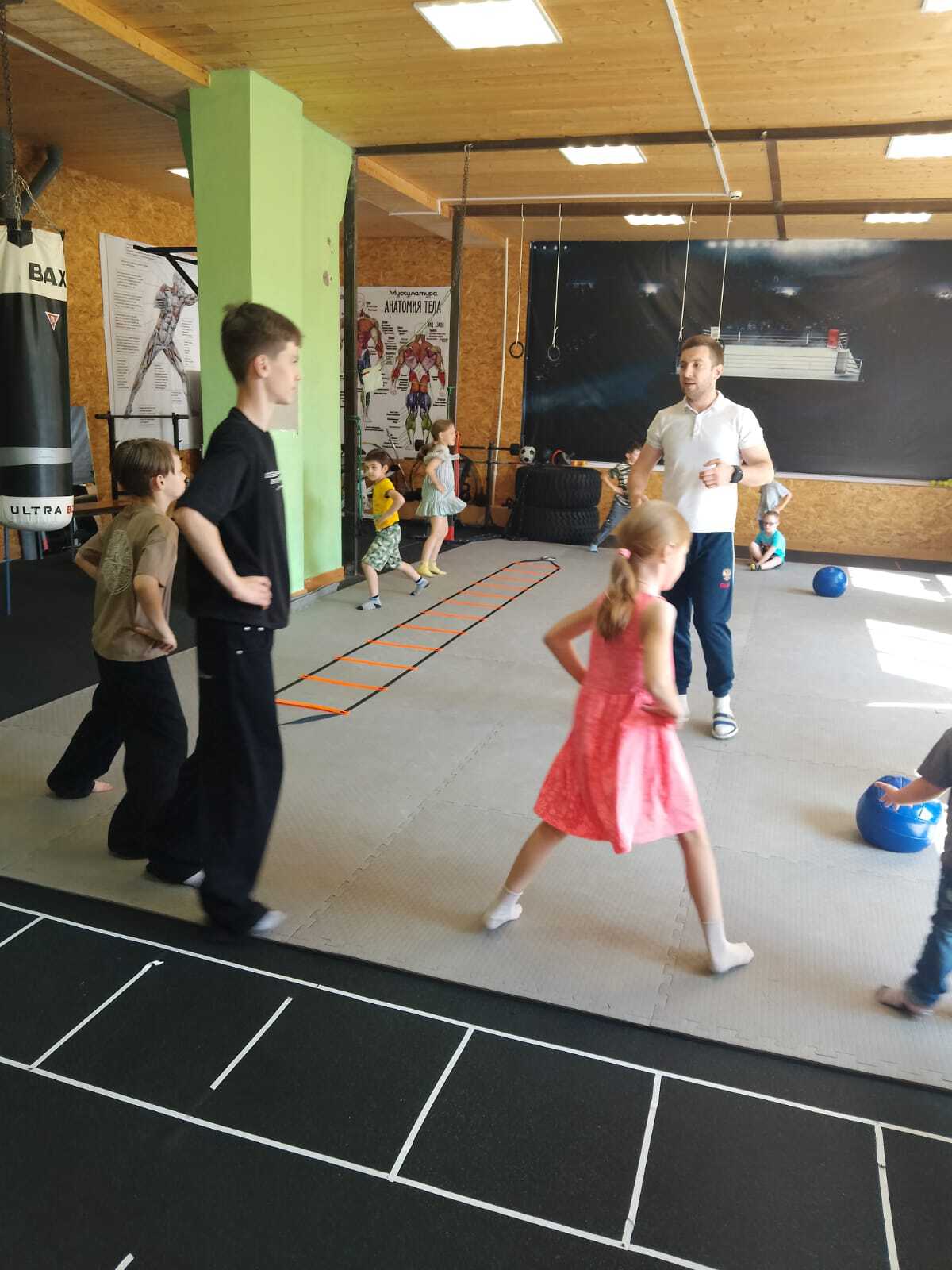 Затем руководитель спортивного клуба "Кинешемская епархия" Игорь Поляков организовал для детей тренировку. Провели общую разминку. Потом каждый участник успешно прошёл импровизированную полосу препятствий.