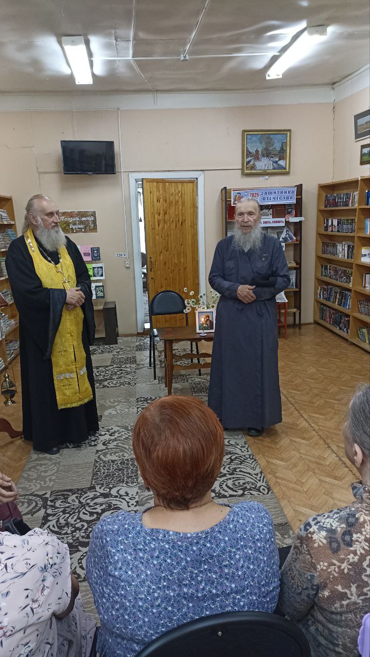 В Лухской центральной библиотеке состоялась встреча благочинного Лухского округа, настоятеля храмов Воскресения Христова и Успения Пресвятой Богородицы иерея Евгения Галкина с участниками литературного клуба "Диалог".