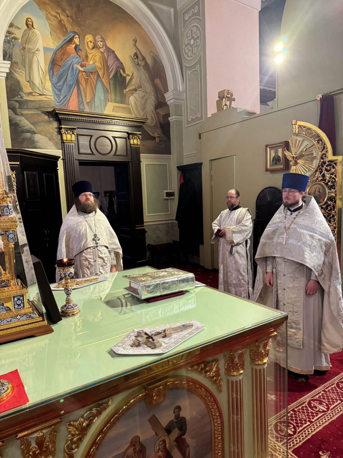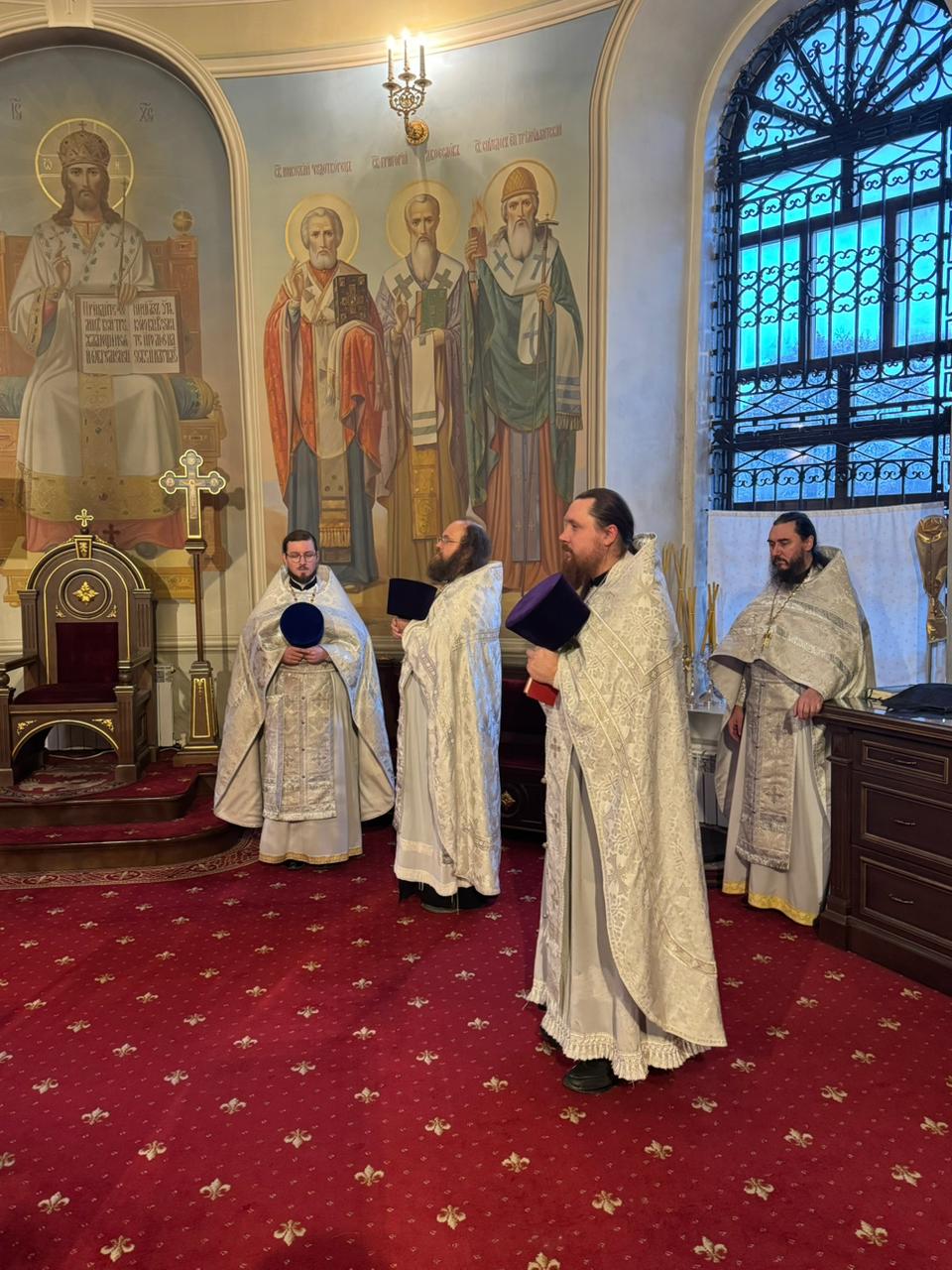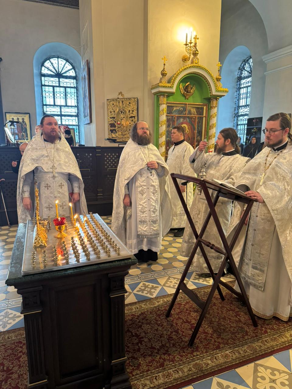 Заупокойную Божественную литургию и панихиду в Свято-Троицком храме кафедрального собора совершили: ключарь собора иерей Иоанн Дубровин, секретарь Епархиального Совета протоиерей Андрей Ефанов, благочинный Кинешемских городского и районного округов иерей Николай Семизоров, иеромонах Сергий (Варнашов), иерей Сергий Абрамов, диакон Андрей Баранов, диакон Антоний Замышляев, диакон Александр Кузнецов.